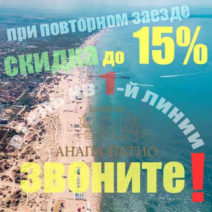 Если вы уже отдыхали в отеле «Анапа-Патио», то для вас — особая скидка на повторное бронирование!